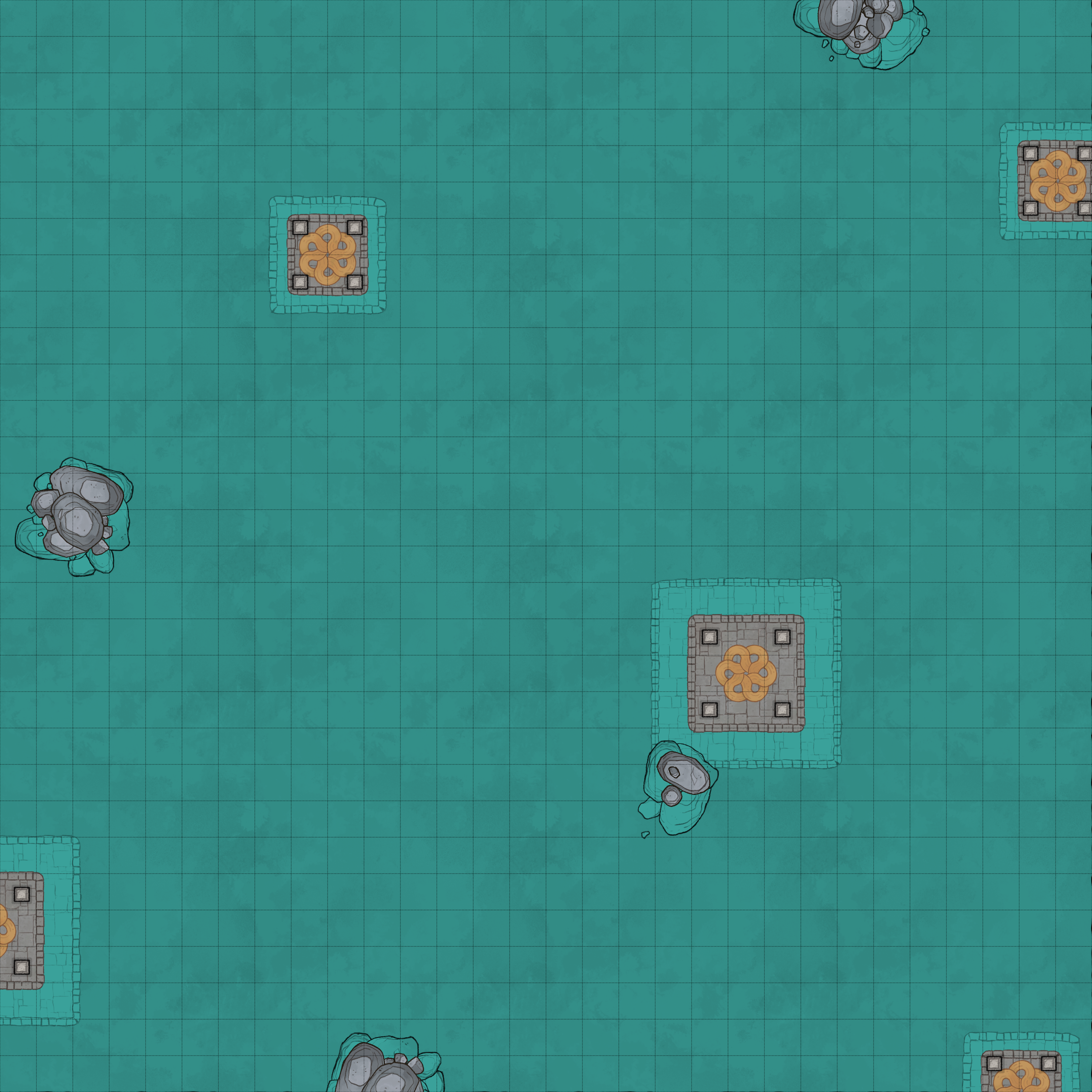 A battlemap with vast open water surface with some structure for the player to gather around. I used this map when the party was getting swarmed by Water Weirds. The only way to stop them was to get out of the water.