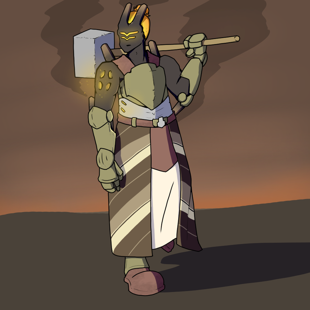 As an Hadaad Amiq, you prize the perfection of your craft above all else. While not crafting any thing massive or intricate, you pride yourself in making well crafted items that improves the ability of its user. Your skin is often in the darker shade and your glow is bright red and orange.