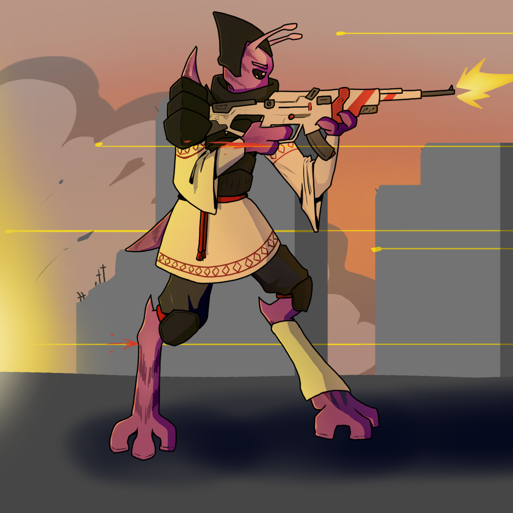 When the iyuzis were discovered, some iyuzis were instructed to prepare for a hostile world. These iyuzis later became the blits iyuzis well known to slowly spread their influence across home via a resilient army. They are adapted to war to a point where blits iyuzi has a semi translucent energy surrounding their torso manifested from just the passive mental acuity.