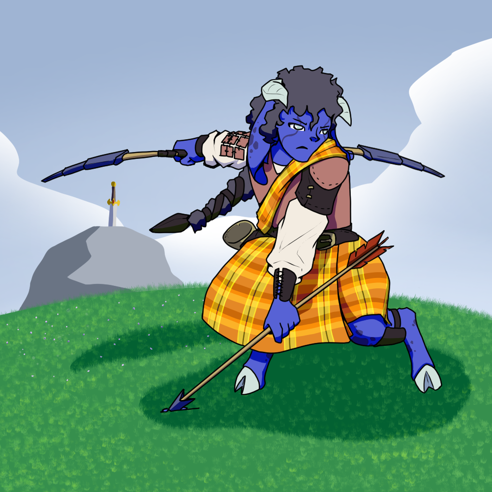 Uamhas are one of the smaller races of Home. They have digitigrade legs with horns that can resemble a bull’s, stag’s or ram’s with females often having smaller horns. They have a brown skin similar to Homeborn but are often in the darker shades while their ears are long and usually floppy. At the back of their head, they have a Lodnuh; A tentacle-like limb that is tipped with a hardened stone-like material. The stone tip can open up to reveal an external nervous interface that an uamhas use to interact with the outside world.
